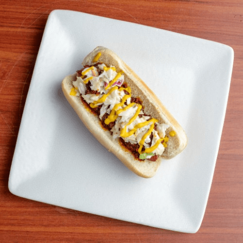 Fresh angus beef patty topped with American cheese, chili, slaw, mustard, and onions.